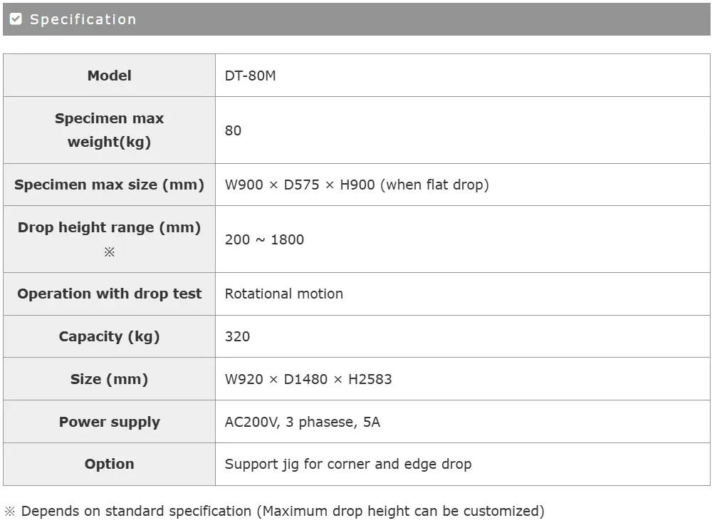 Standard Drop Tester for Packaged Freight DT-80M