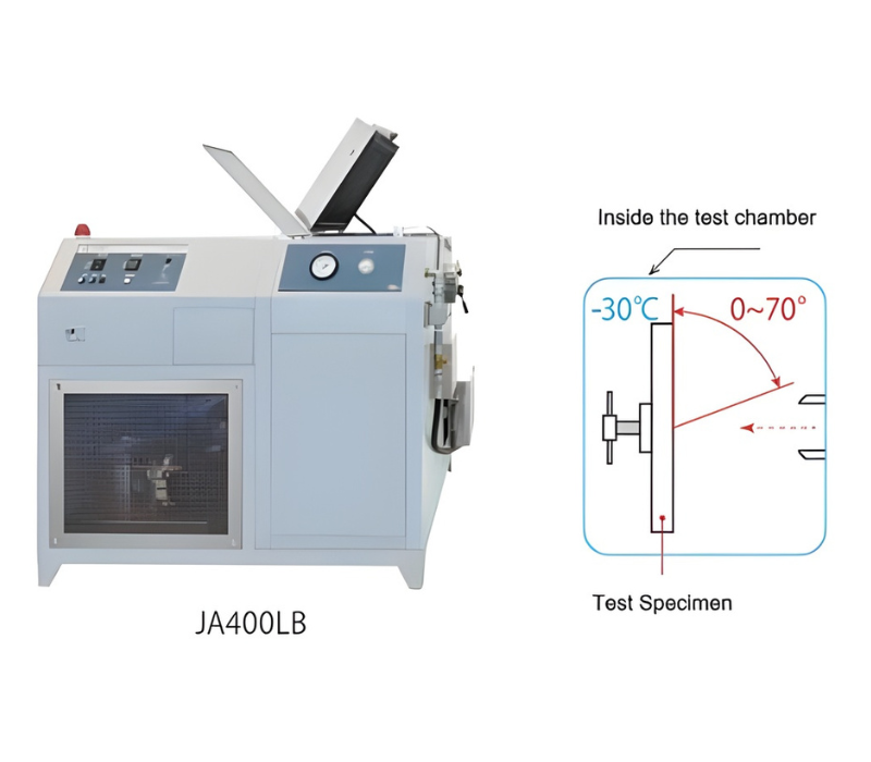 The temperature of the test tank can be adjusted in the range of -30℃ to + 35℃, and the specimen mounting angle can be tilted from 0 ° vertically to 70 ° in front.